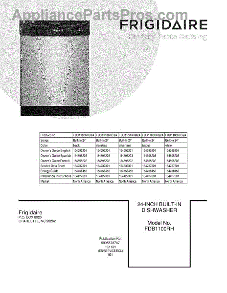 Parts for Frigidaire FDB1100RHC2A: 01 - Cover Parts