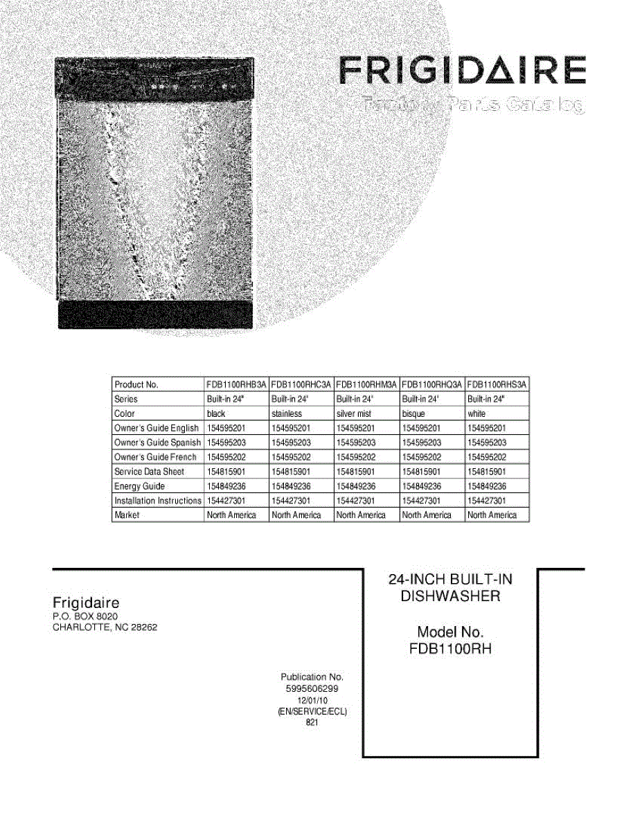 Parts for Frigidaire FDB1100RHQ3A: 01 - Cover Parts