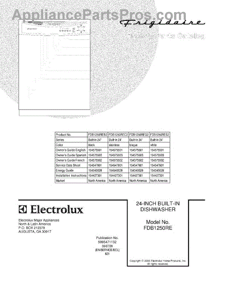 Parts for Frigidaire FDB1250REB2: 01 - Cover Parts