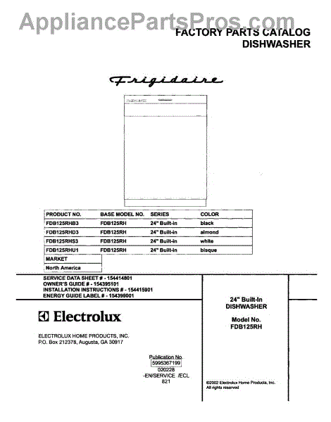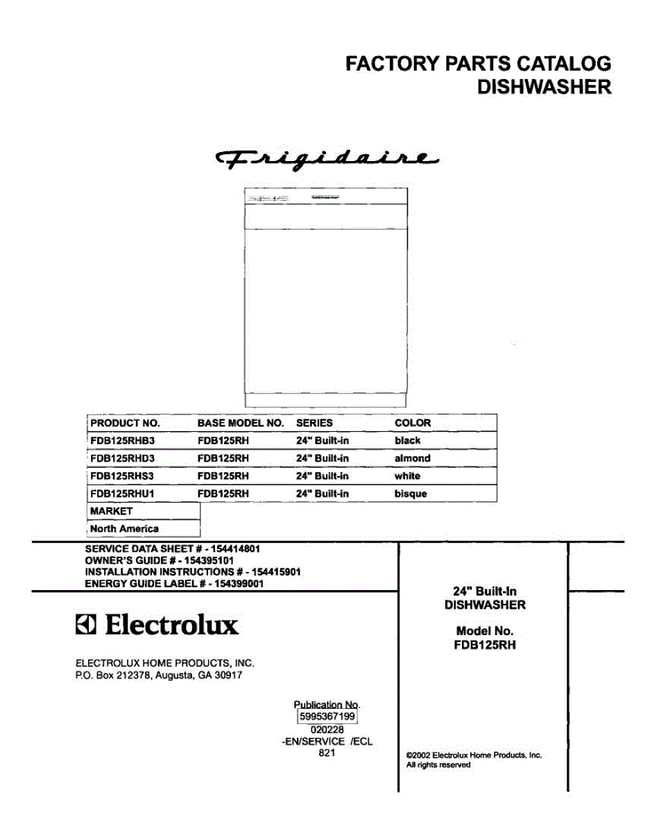Parts for Frigidaire FDB125RHB3: 01 - Cover Parts