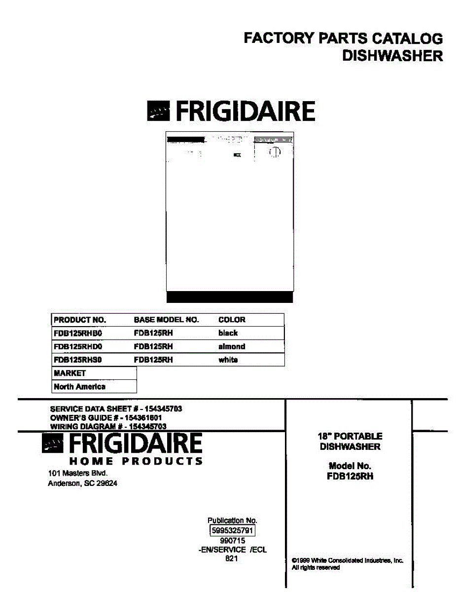 Parts for Frigidaire FDB125RHS0: 01 - Cover Parts
