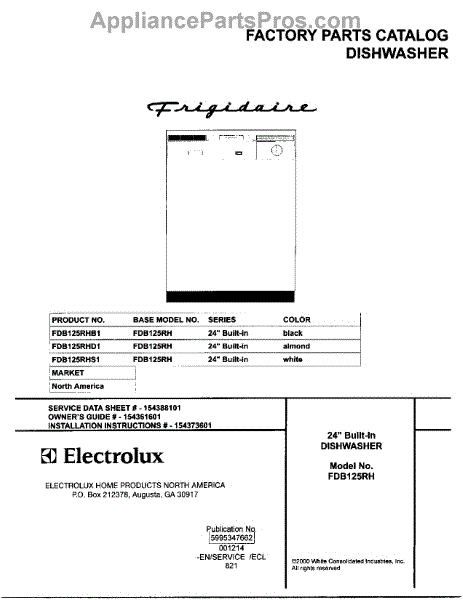 Parts for Frigidaire FDB125RHS1: 01 - Cover Parts