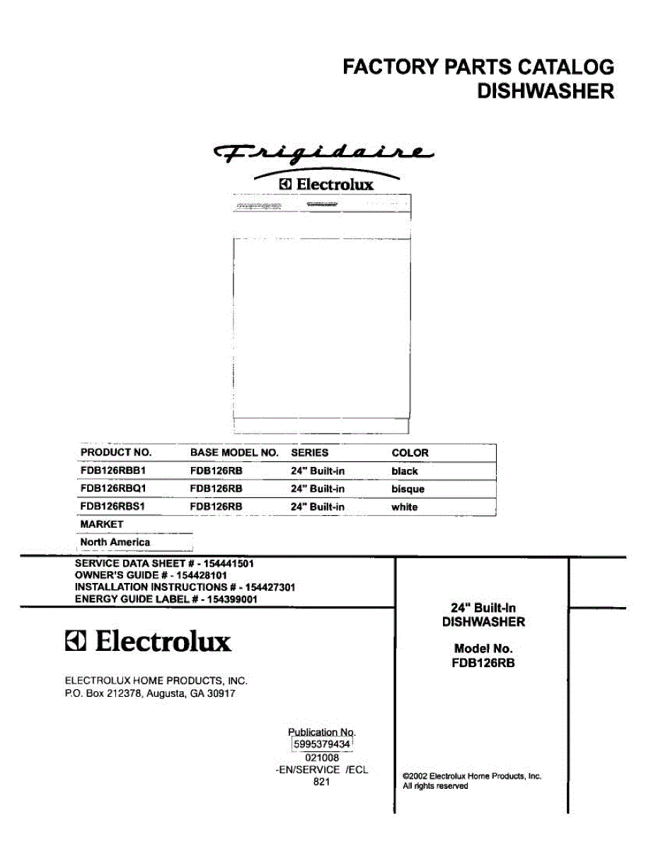 Parts for Frigidaire FDB126RBB1: 01 - Cover Parts