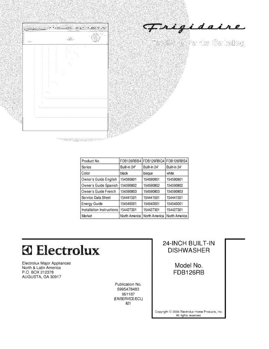 Parts for Frigidaire FDB126RBB4: 01 - Cover Parts