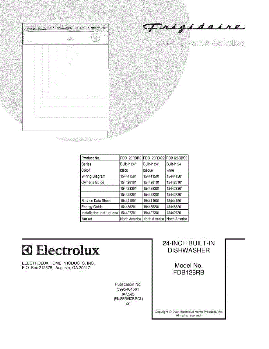 Parts for Frigidaire FDB126RBS2: 01 - Cover Parts