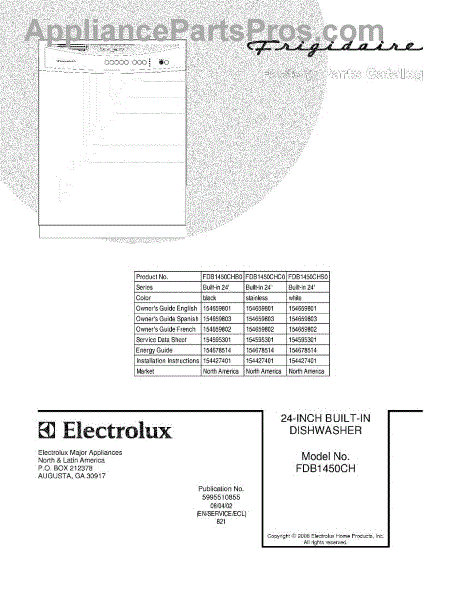 Parts for Frigidaire FDB1450CHS0: 01 - Cover Parts