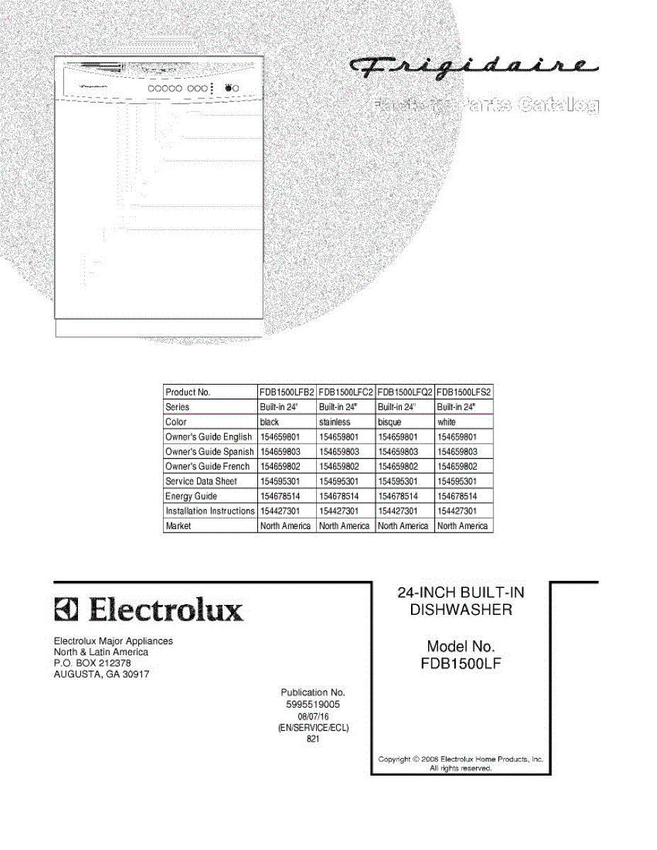 Parts for Frigidaire FDB1500LFS2: 01 - Cover Parts