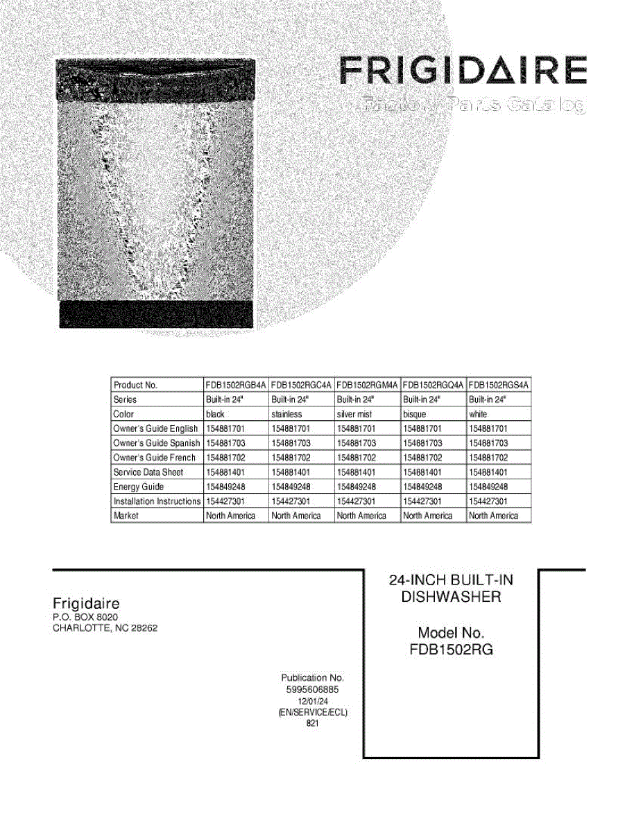 Parts for Frigidaire FDB1502RGM4A: 01 - Cover Parts