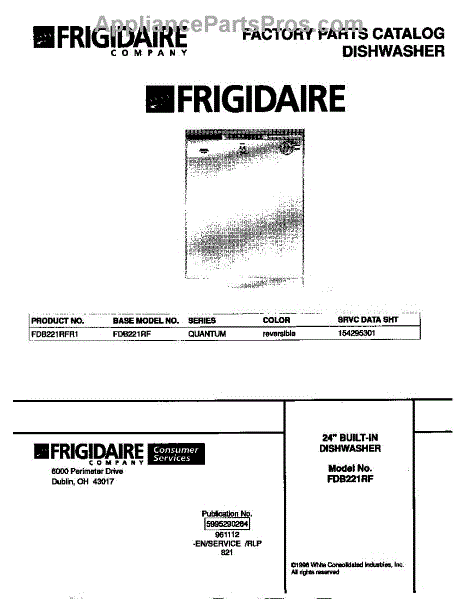 Parts for Frigidaire FDB221RFR1: 01 - Cover Parts