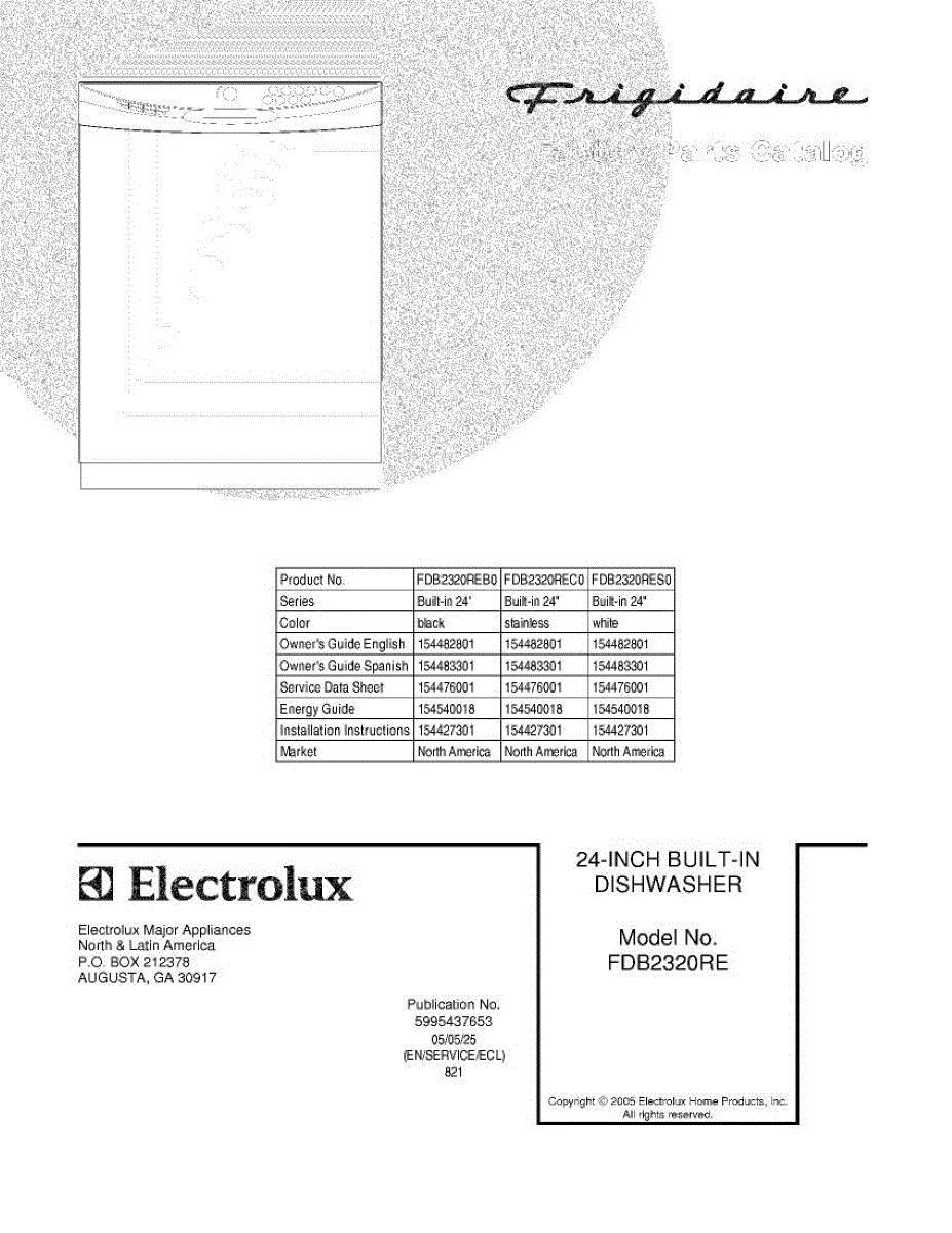 Parts for Frigidaire FDB2320RES0: 01 - Cover Parts