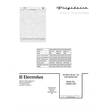 Parts for Frigidaire FDB2410HIB0: 01 - Cover Parts