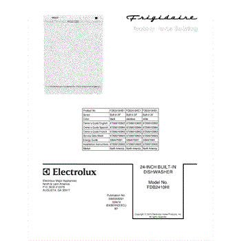 Parts for Frigidaire FDB2410HIB1: 01 - Cover Parts