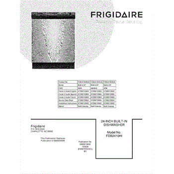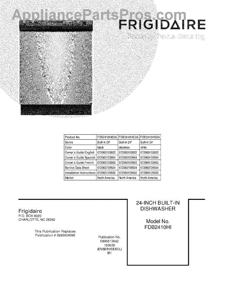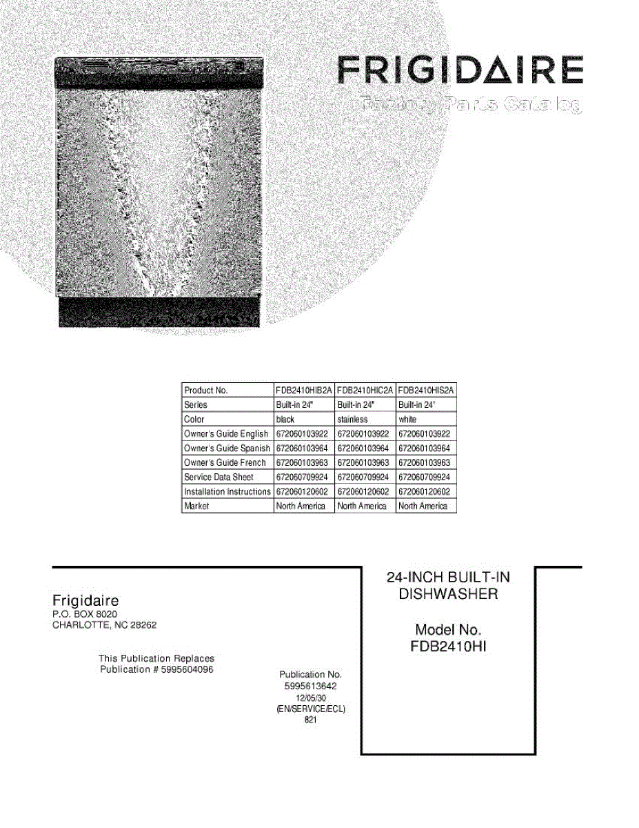 Parts for Frigidaire FDB2410HIC2A: 01 - Cover Parts