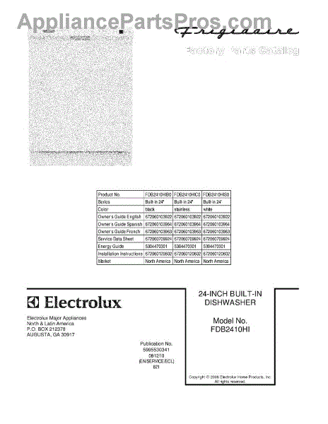 Parts for Frigidaire FDB2410HIS0: 01 - Cover Parts