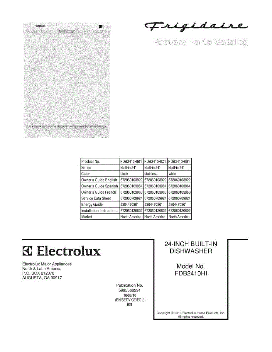 Parts for Frigidaire FDB2410HIS1: 01 - Cover Parts