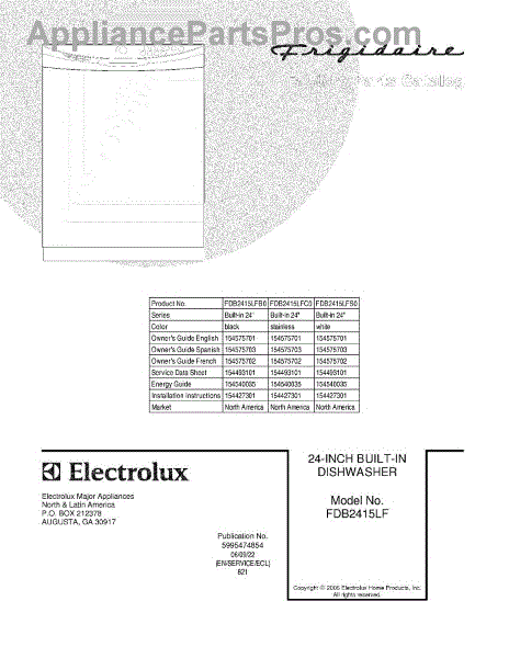 Parts for Frigidaire FDB2415LFC0: 01 - Cover Parts