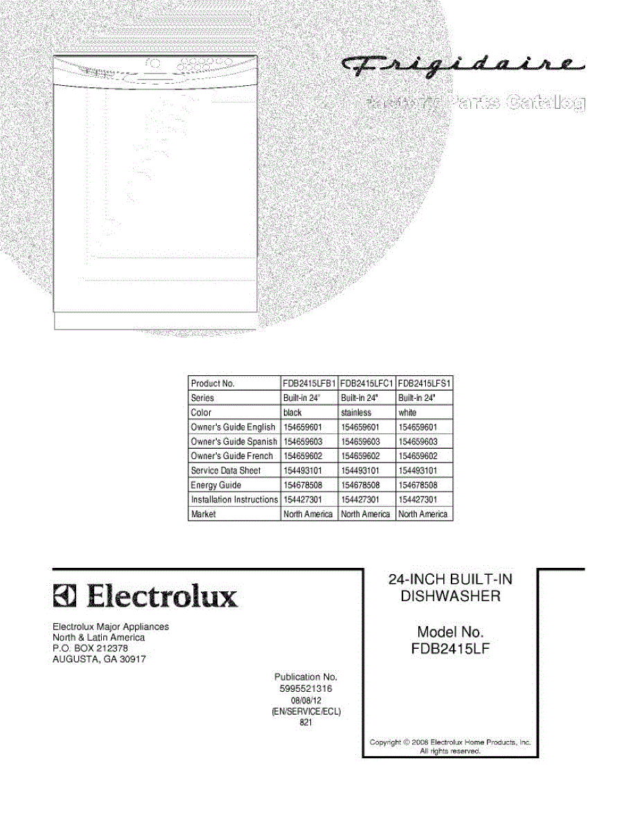 Parts for Frigidaire FDB2415LFC1: 01 - Cover Parts