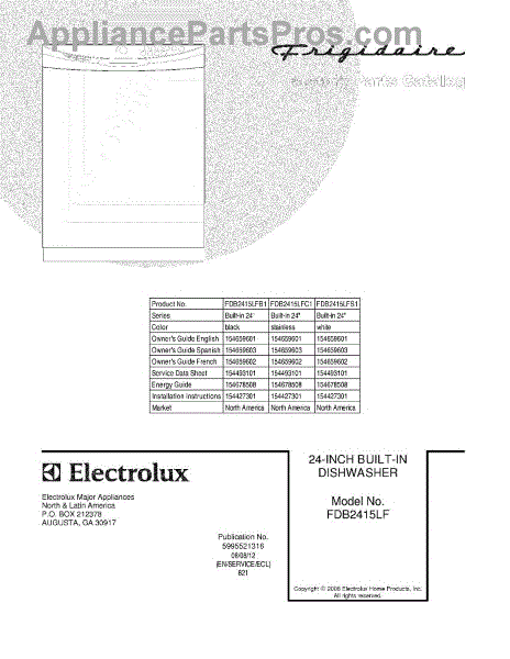 Parts for Frigidaire FDB2415LFS1: 01 - Cover Parts