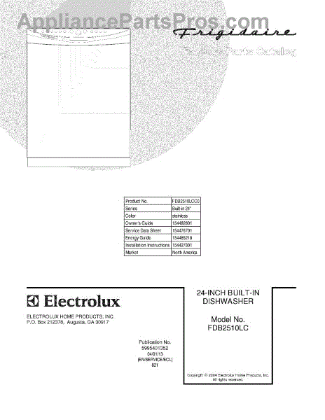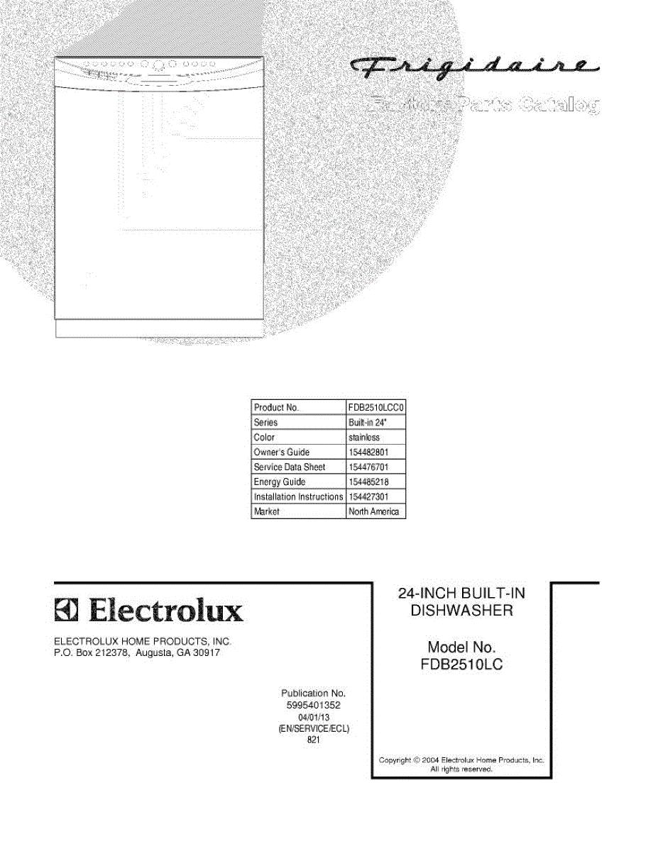 Parts for Frigidaire FDB2510LCC0: 01 - Cover Parts