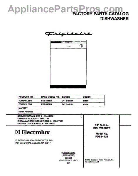 Parts for Frigidaire FDB345LBB0: 01 - Cover Parts