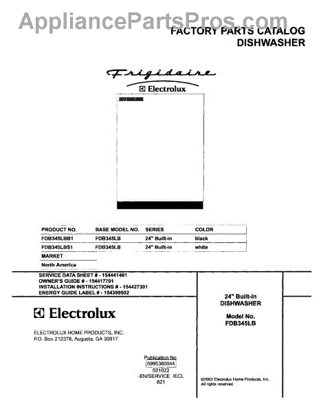 Parts for Frigidaire FDB345LBB1: 01 - Cover Parts