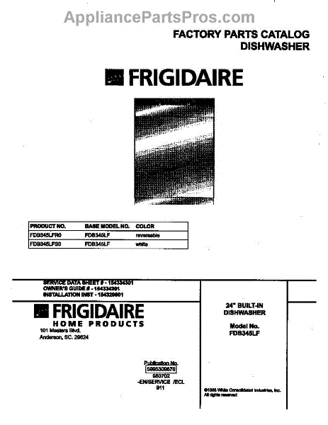 Parts for Frigidaire FDB345LFS0: 01 - Cover Parts