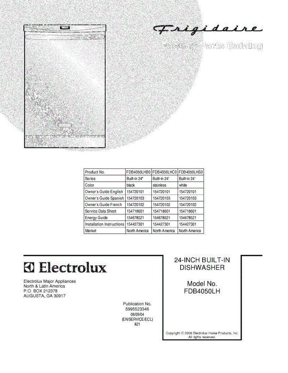 Parts for Frigidaire FDB4050LHC0: 01 - Cover Parts