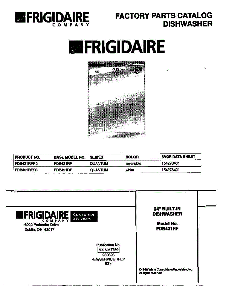 Parts for Frigidaire FDB421RFR0: 01 - Cover Parts