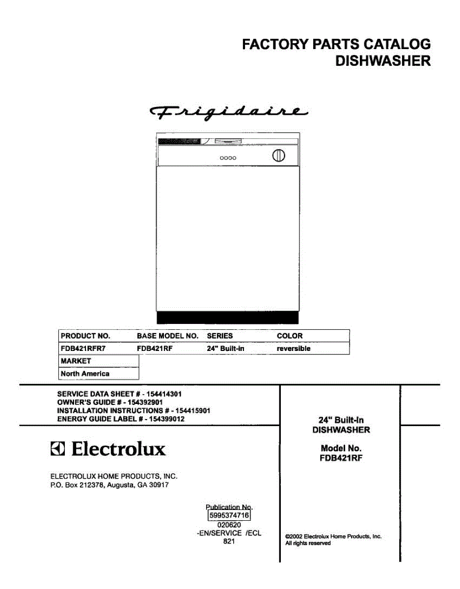 Parts for Frigidaire FDB421RFR7: 01 - Cover Parts