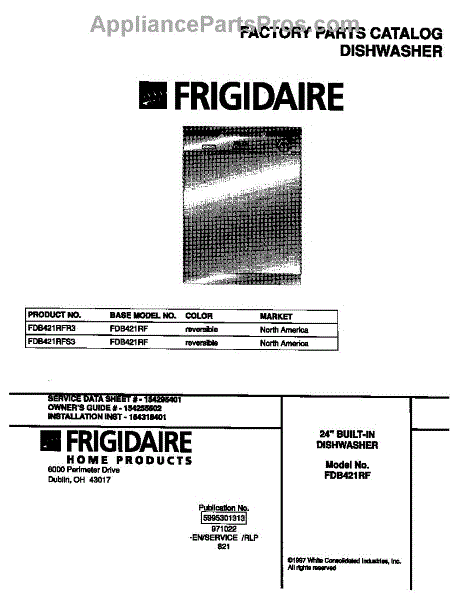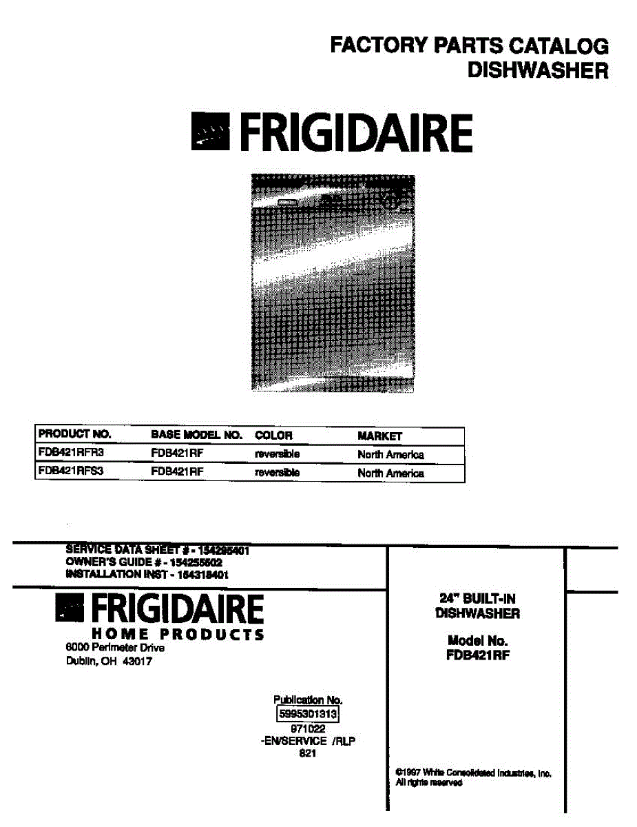 Parts for Frigidaire FDB421RFS3: 01 - Cover Parts
