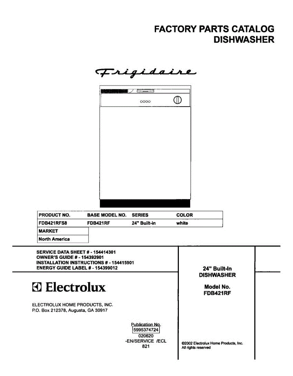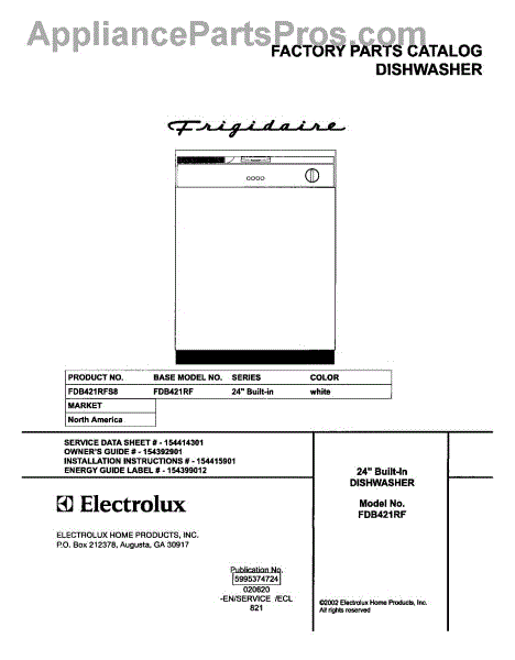 Parts for Frigidaire FDB421RFS8: 01 - Cover Parts