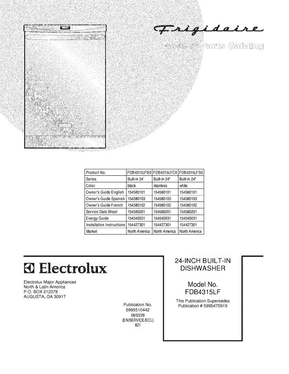 Parts for Frigidaire FDB4315LFB0: 01 - Cover Parts