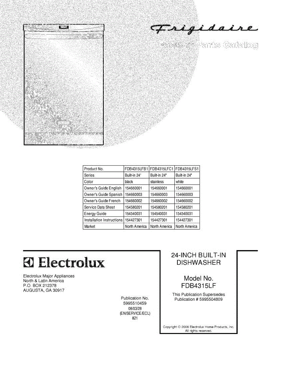 Parts for Frigidaire FDB4315LFC1: 01 - Cover Parts