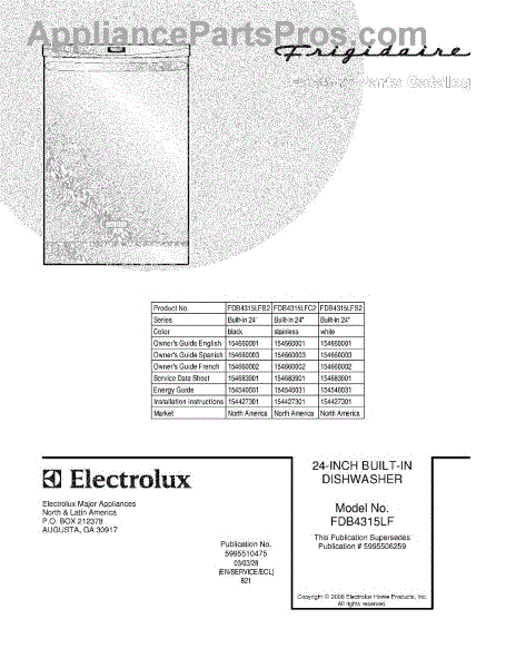 Parts for Frigidaire FDB4315LFC2: 01 - Cover Parts