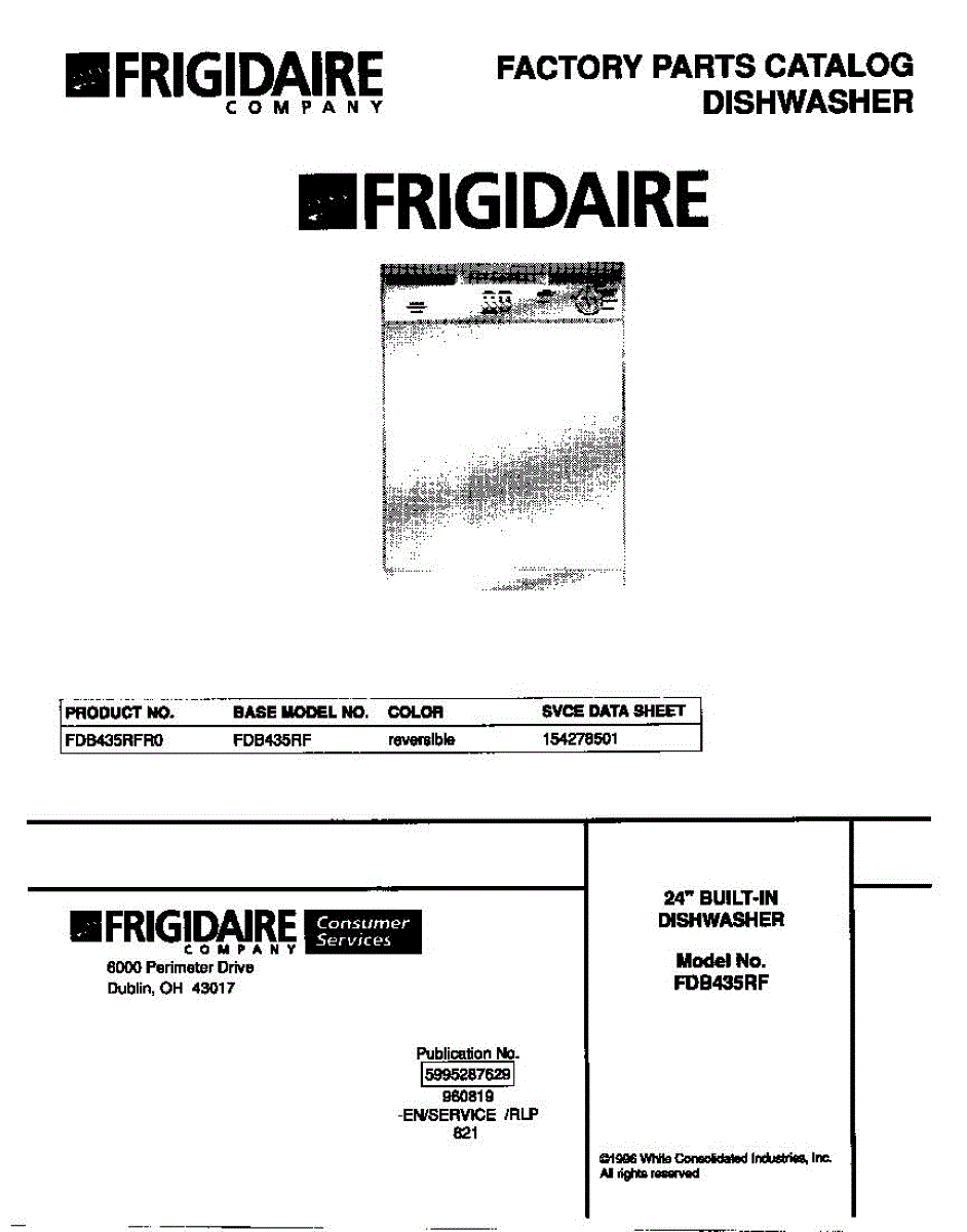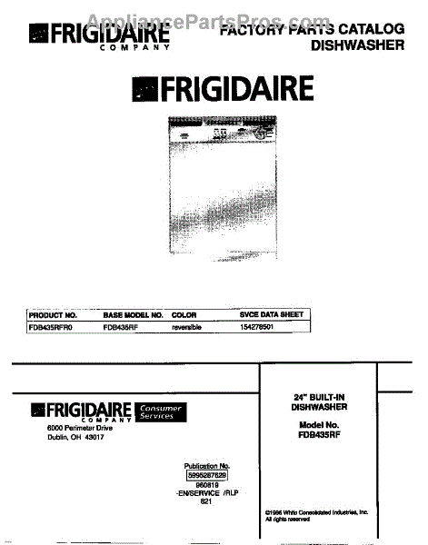 Parts for Frigidaire FDB435RFR0: 01 - Cover Parts