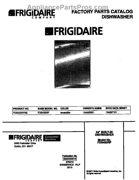 Parts for Frigidaire FDB435RFR2: 01 - Cover Parts