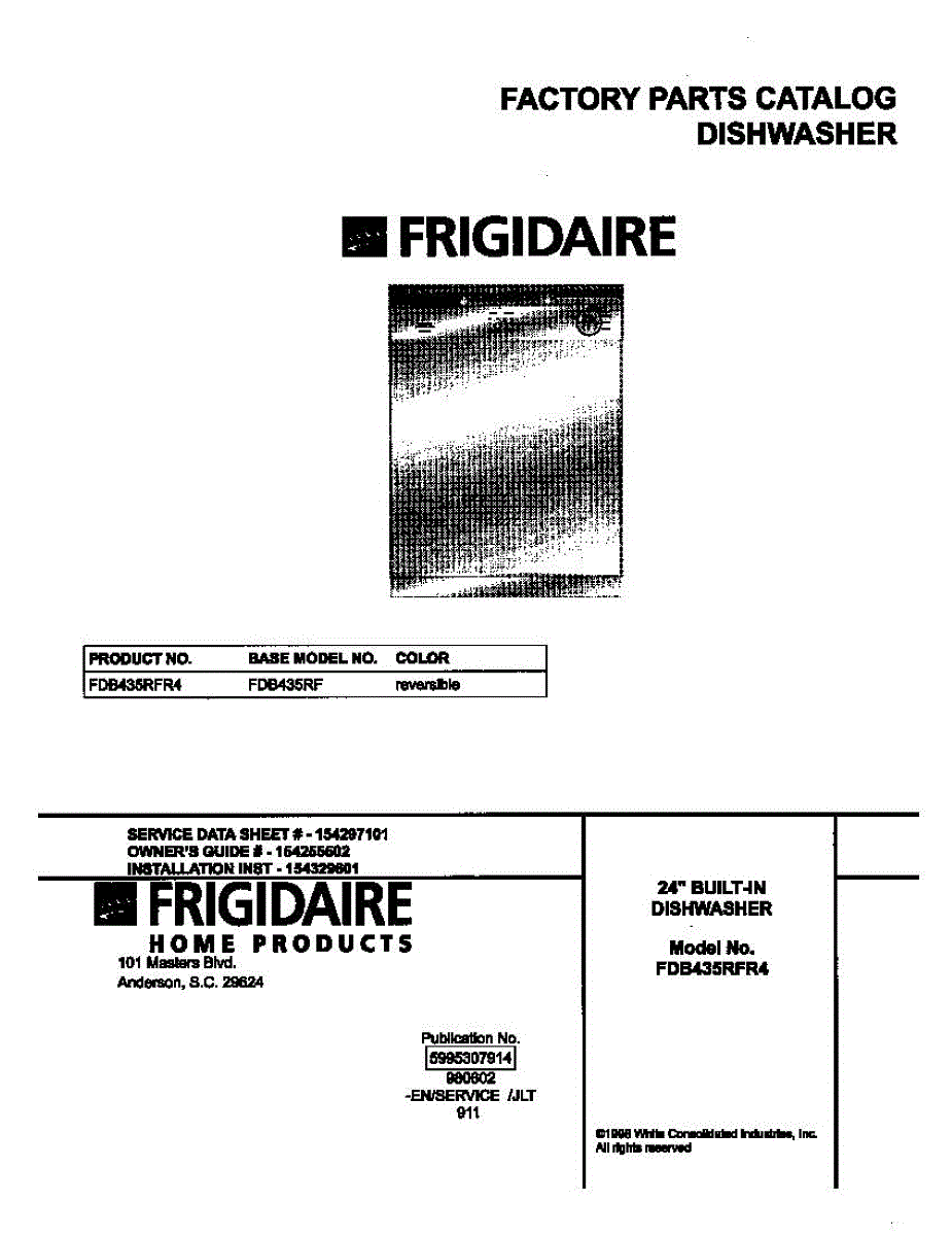 Parts for Frigidaire FDB435RFR4: 01 - Cover Parts