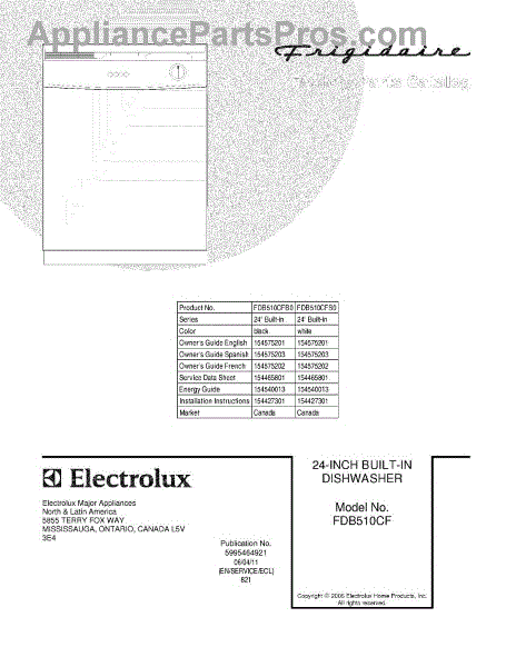 Parts for Frigidaire FDB510CFB0: 01 - Cover Parts