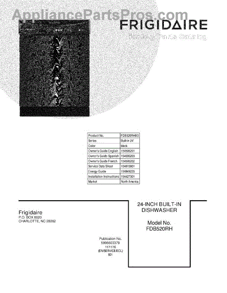 Parts for Frigidaire FDB520RHB3: 01 - Cover Parts