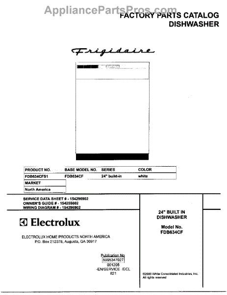 Parts for Frigidaire FDB634CFS1: 01 - Cover Parts