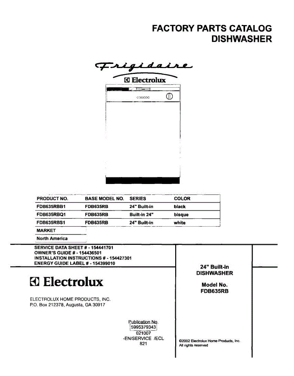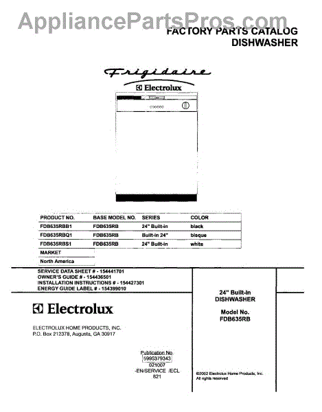 Parts for Frigidaire FDB635RBS1: 01 - Cover Parts