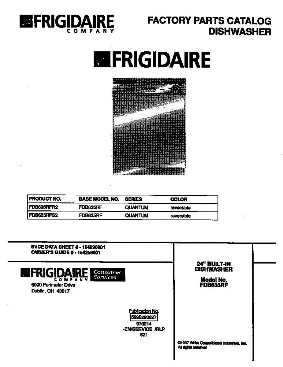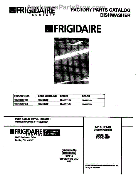 Parts for Frigidaire FDB635RFR2: 01 - Cover Parts