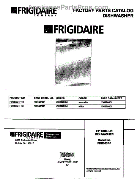 Parts for Frigidaire FDB635RFS0: 01 - Cover Parts