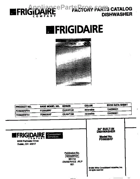 Parts for Frigidaire FDB635RFS1: 01 - Cover Parts