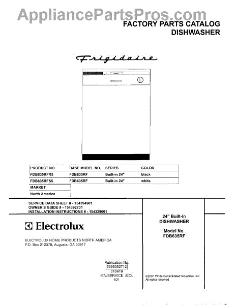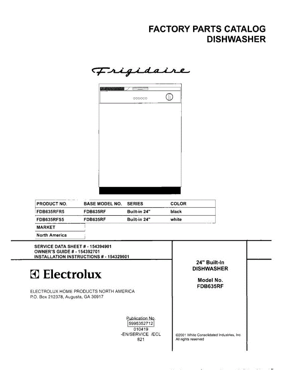Parts for Frigidaire FDB635RFS5: 01 - Cover Parts