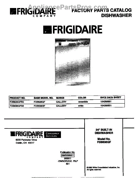 Parts for Frigidaire FDB636GFR0: 01 - Cover Parts