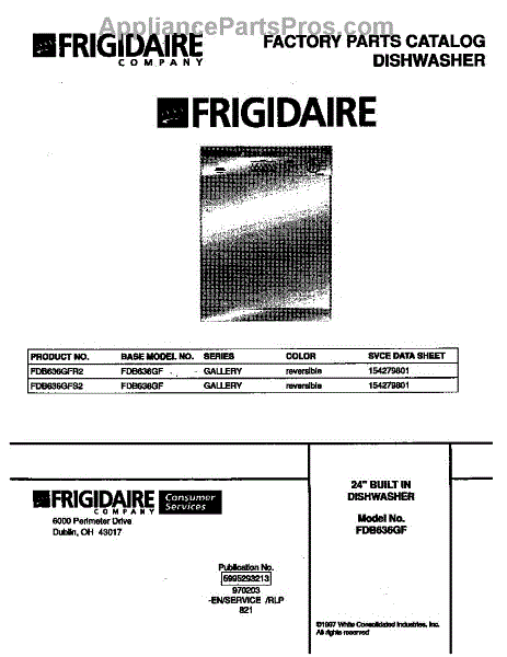 Parts for Frigidaire FDB636GFR2: 01 - Cover Parts
