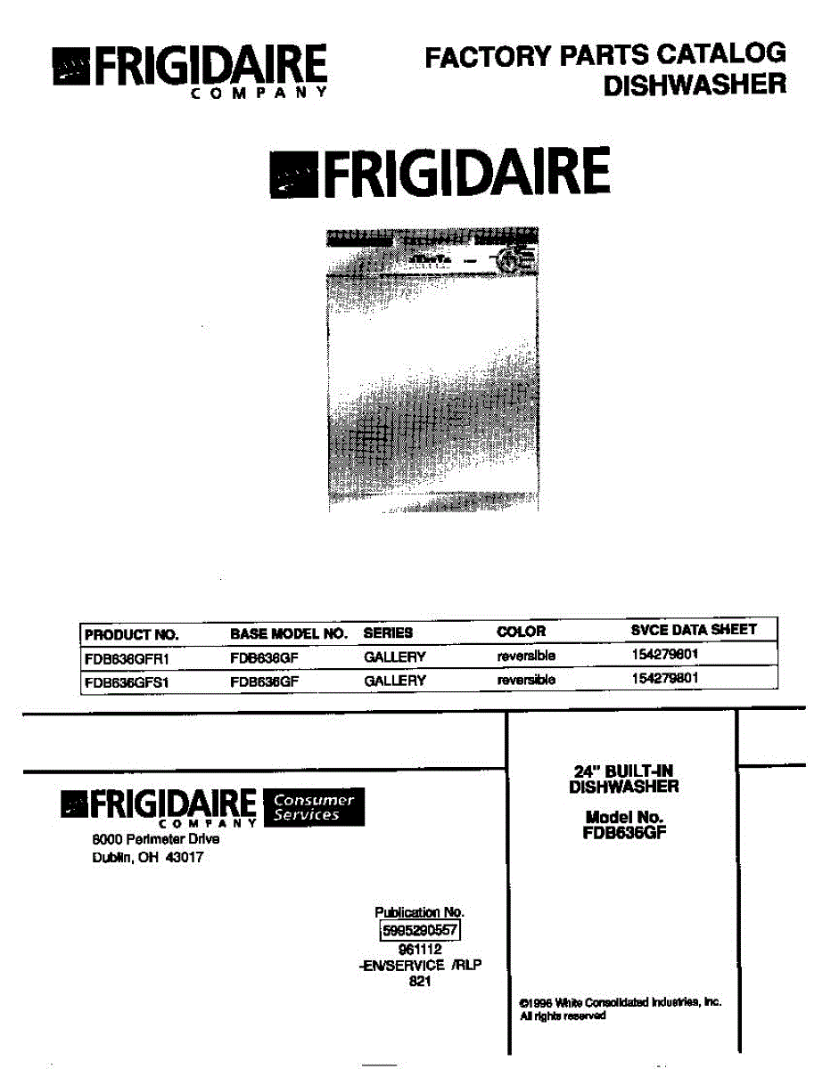Parts for Frigidaire FDB636GFS1: 01 - Cover Parts