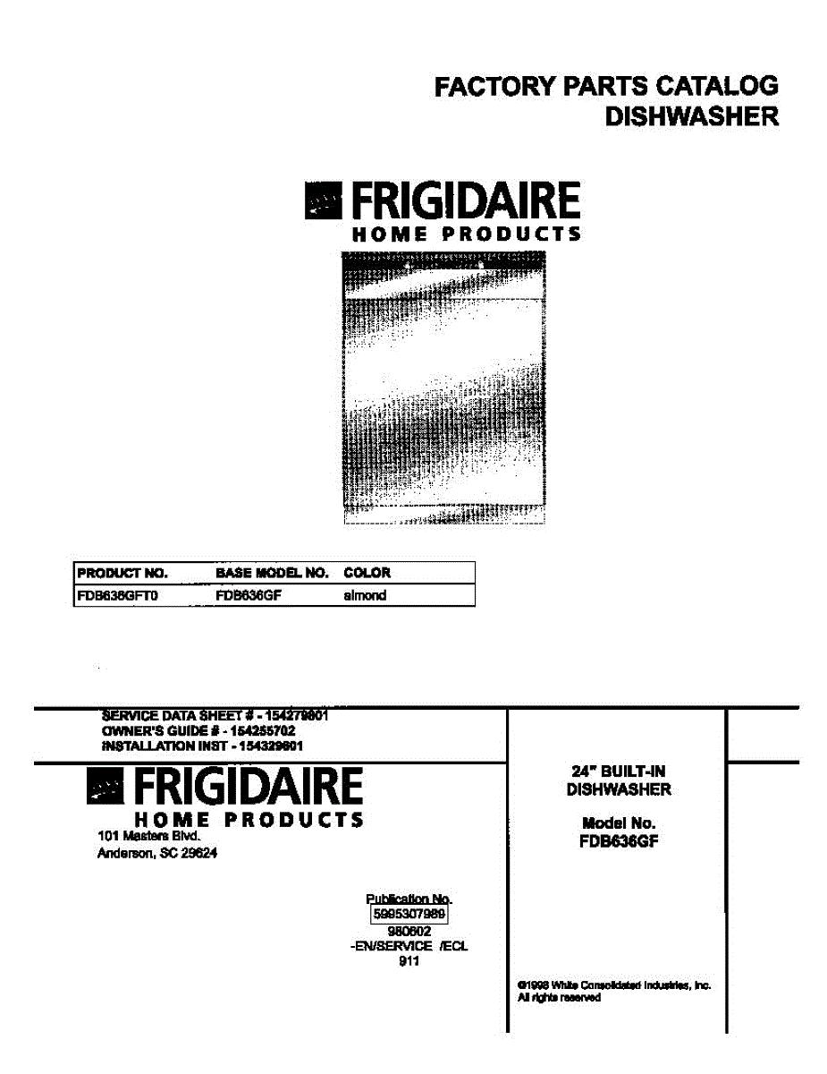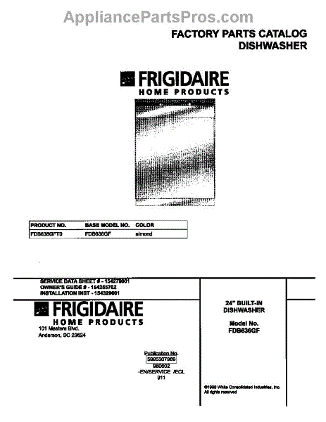 Parts for Frigidaire FDB636GFT0: 01 - Cover Parts
