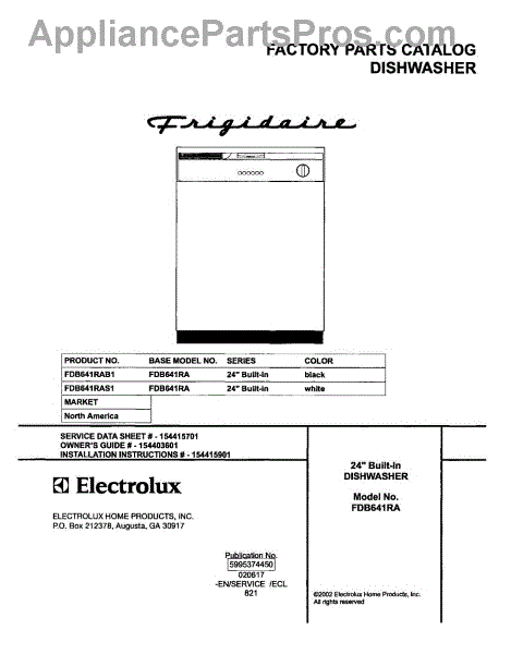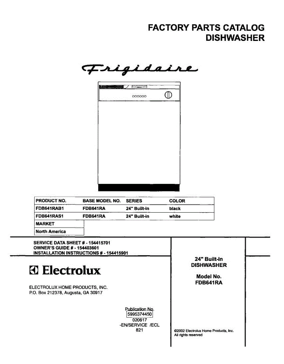 Parts for Frigidaire FDB641RAS1: 01 - Cover Parts